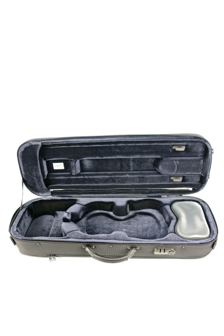Inside cradle made of injected high density polyurethane foam, protecting the instrument against thermal shocks; ABS reinforcements in the structure; RRemovable accessory pouch, fitted in a dedicated space; two bow holders; two padded backpack straps, adjustable, removable; subway handle; side handle; removable pockets in the large external pocket; large external back pocket for sheet music; flat external front pocket made of reflecting fabric; zipper with a combination lock for the zipper pulls; external 2000 denier water-resistant Cordura fabric