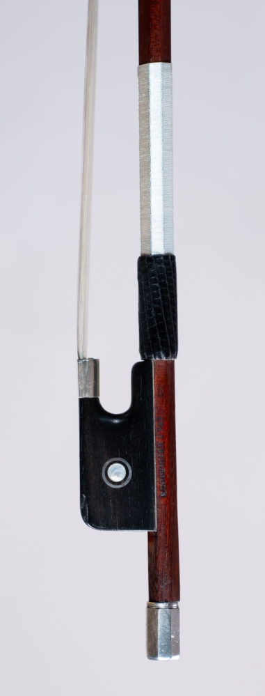 Violin bow by Louis Morizot pere’ from 1925/30 (during which time he was cooperating with E. Sartory). Guillaume certificate.