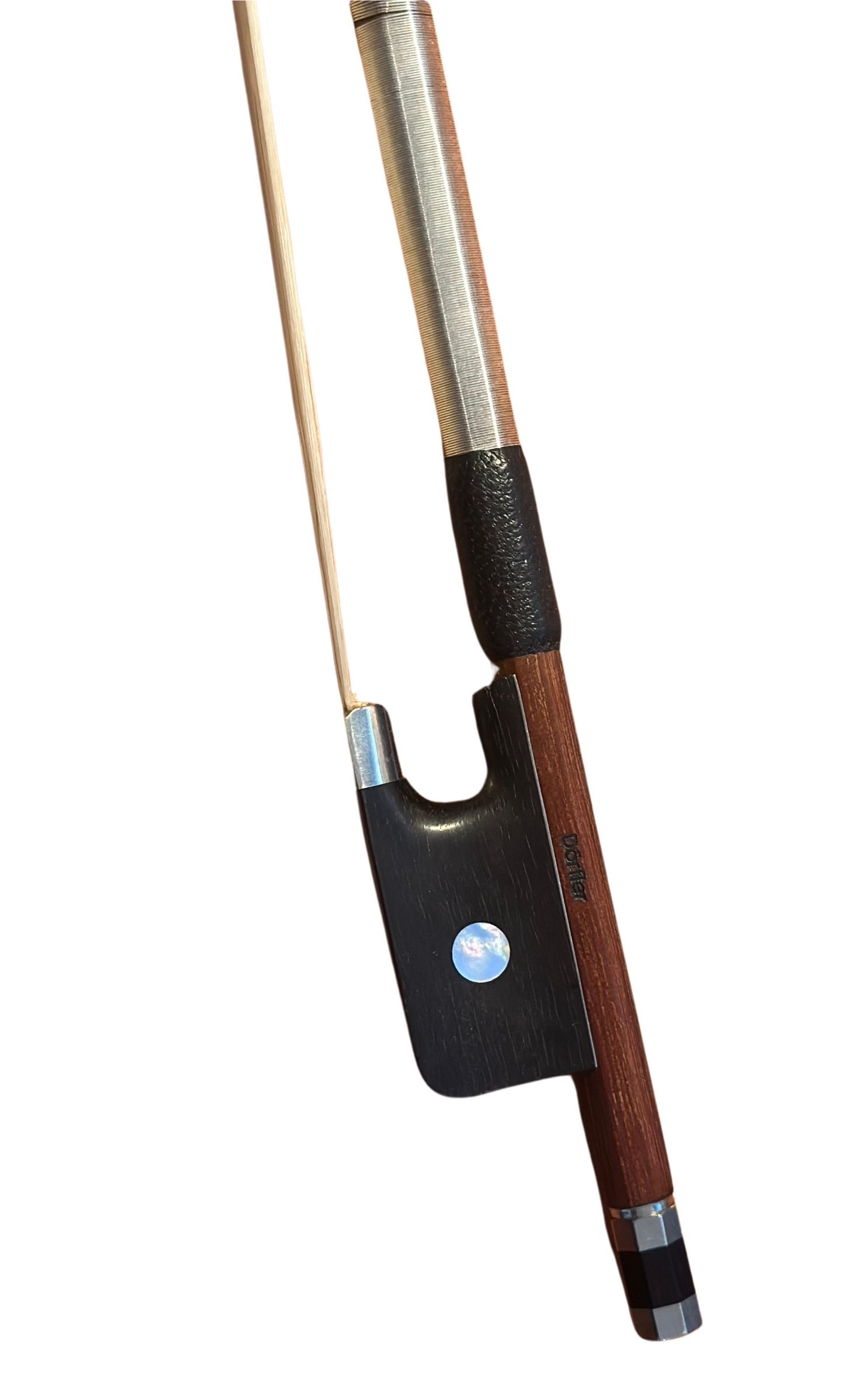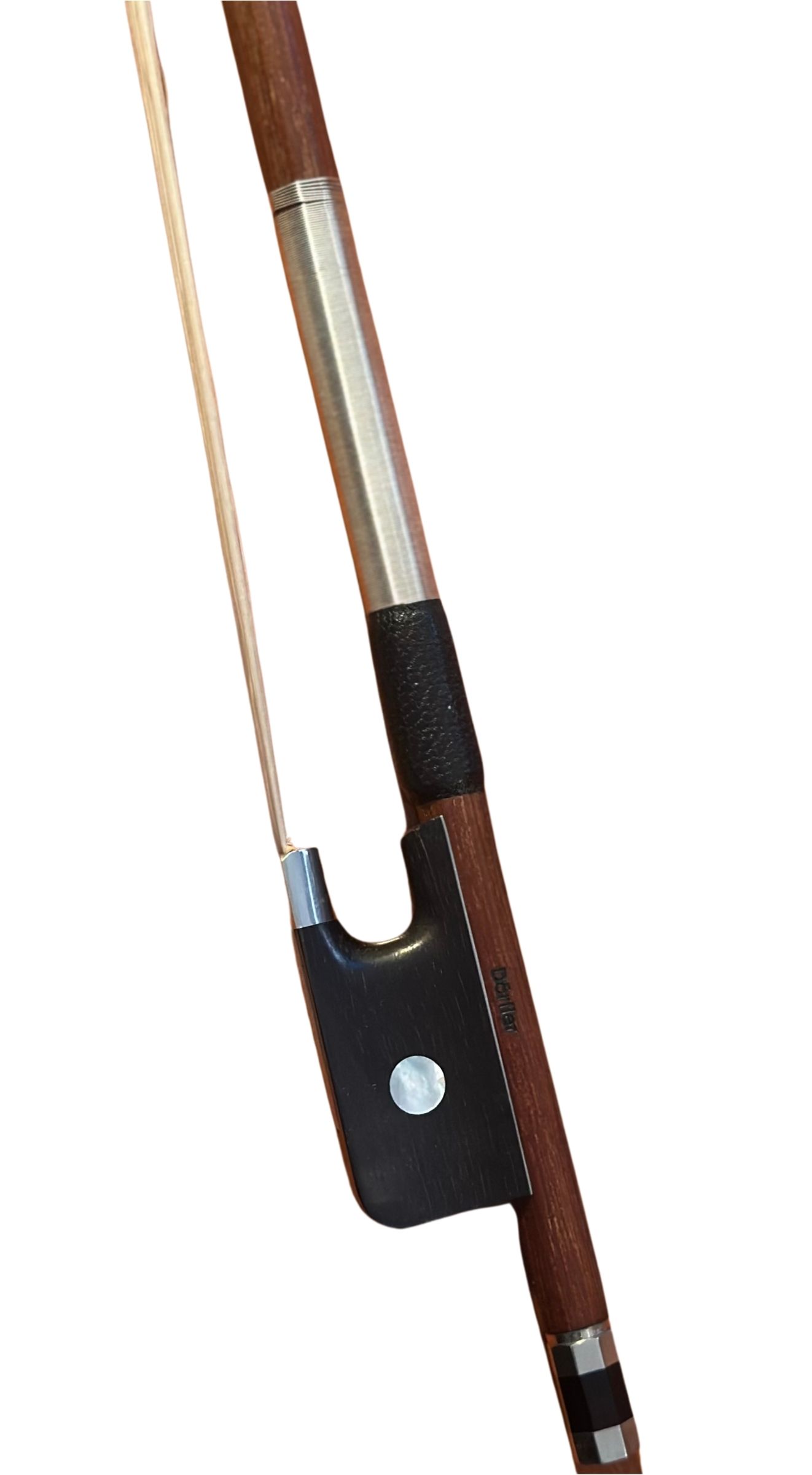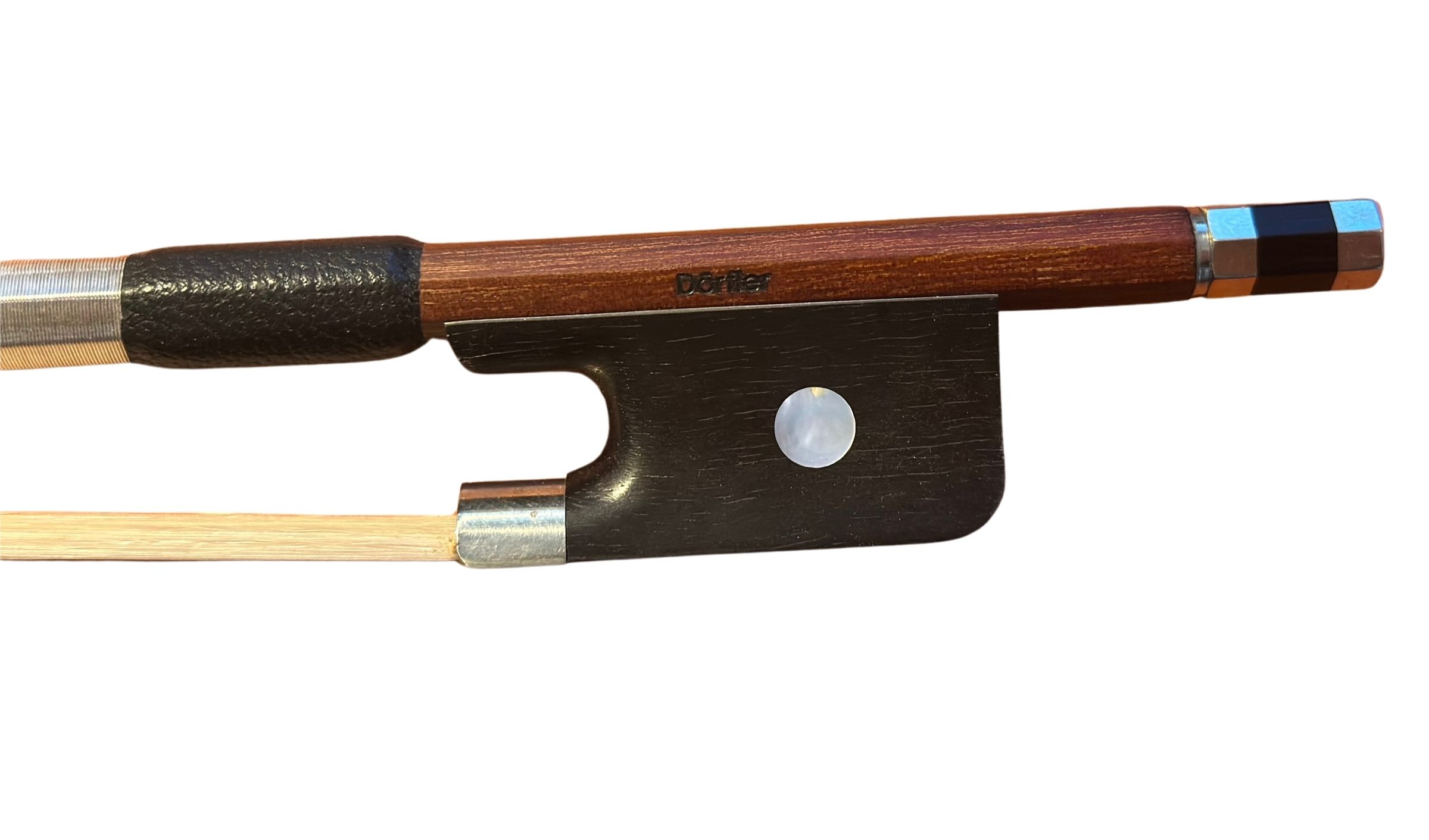 Violabogen aus gutem Brazilholz, gestempelt Dörfler. Ebenholzfrosch mit Bahn und Auge. Oktagonaler Stange. Metal-Blanc-Wicklung. Dreiteiliges Beinchen.
